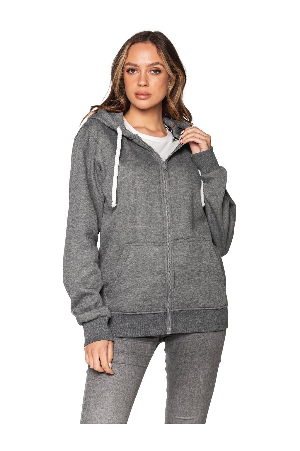 A legújabb kollekcióban található ez a pulóver, kiváló minőségű pamut- és poliészterfonal keverékből készült (belül bolyhos), melynek köszönhetően puha tapintású és nem érdesedik. Az anyagot a gyártás során beavatják, hogy később ne menjen össze. Anyagvastagság: 280g/m2.