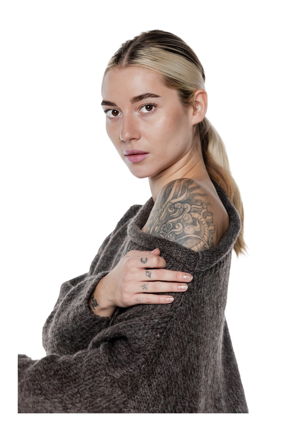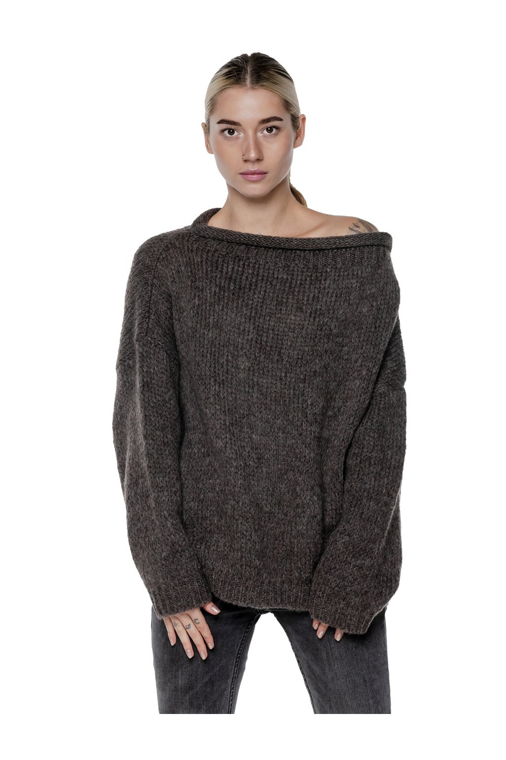 Ez az Underworld legújabb kollekciójában megtalálható pulóver ideális a hideg napokra. Csónaknyakának köszönhetően többféleképpen viselhető, így tökéletes választás bármilyen ruhához.